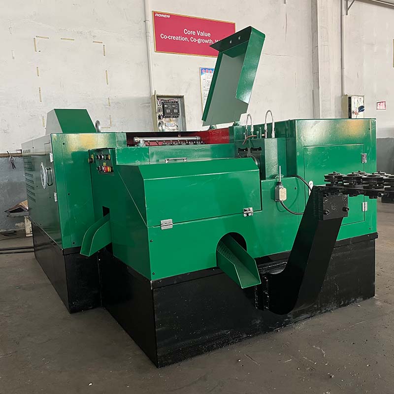 Автоматична машина для виготовлення шестигранних гайок виробництва Ronen® може почати працювати автоматично після її налаштування. Він просто нарізає металеві стрижні необхідного розміру, а потім перетворює їх на шестигранні гайки. Заводи, які виробляють шестигранні гайки у великих кількостях, зазвичай вибирають цей верстат.
