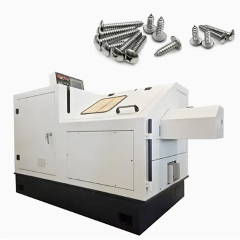 Автоматична машина для виготовлення деревини - це виробнича лінія, призначена для безперервного виготовлення круглих деревних гвинтів. Він автоматично завершує наступні кроки: подача дроту, випрямлення, різання порожнього, утворюючи головку гвинта, котять спеціалізовану грубу нитку для деревини та створює гострий конічний наконечник. Кінцевий вихід - це повний дерев’яний гвинт, який зазвичай виробляється з великою швидкістю.
