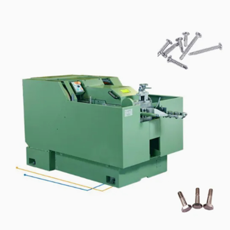 Машина для заголовка гвинта - це холодний куванням прес, спеціально розроблений для формування головки гвинтів. Він використовує розрізаний дріт (сировина), подає його в кування на куванням по черзі, і застосовує високий тиск до одного кінця сировини для засмучення. Цей процес холодного формування не потребує різання матеріалу і може сформувати метал у різні форми головки гвинта.